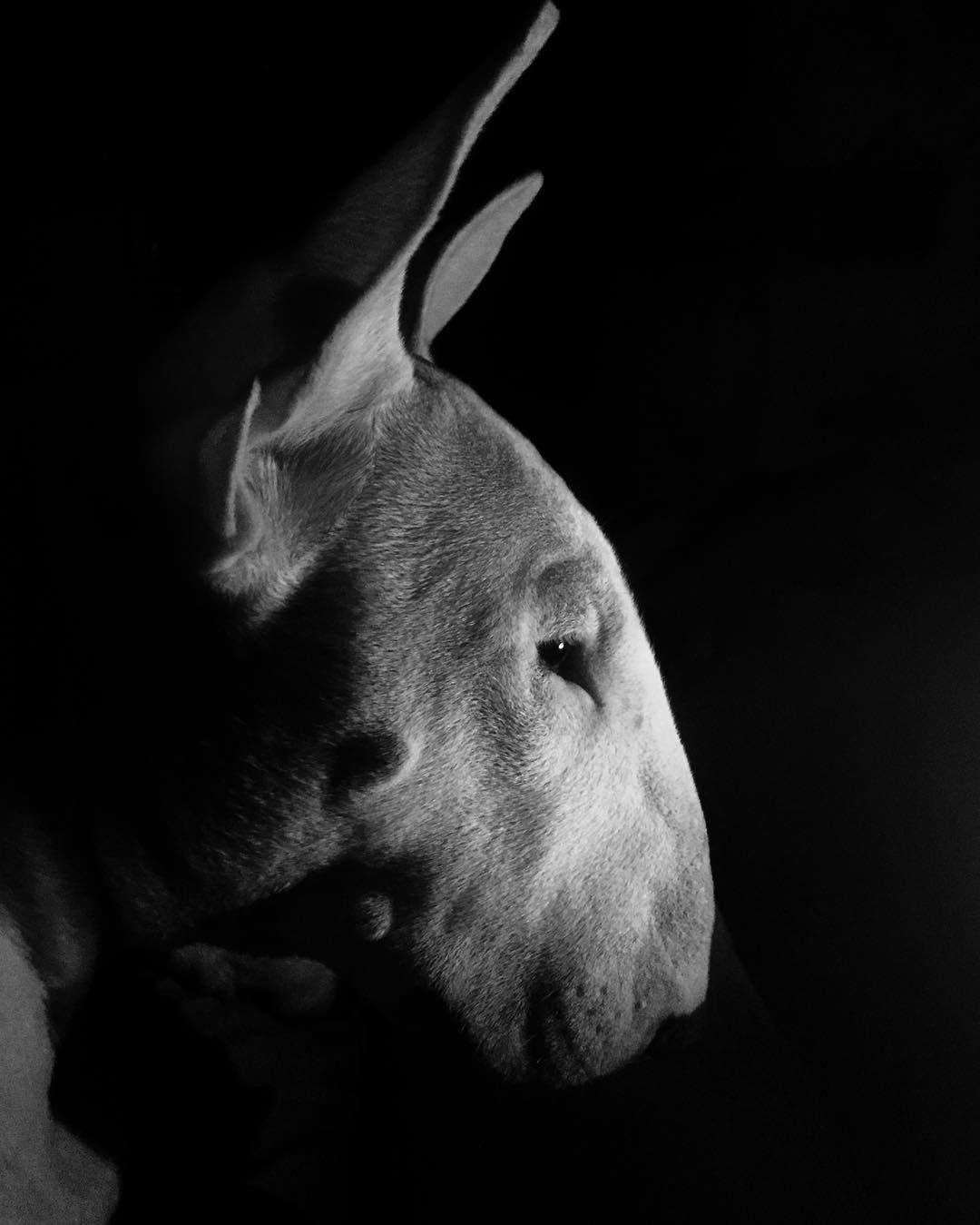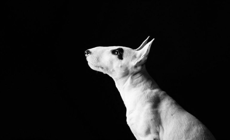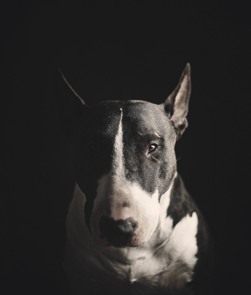 Бультерьер на черном фоне