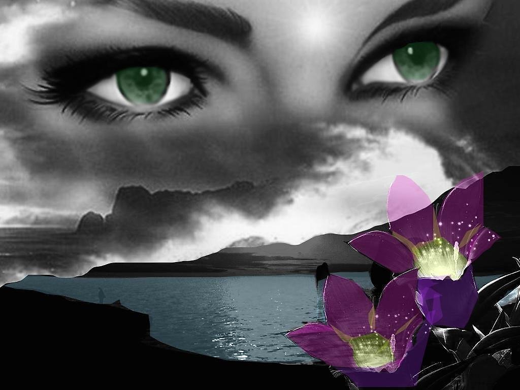 "зеленые глаза на черном фоне"