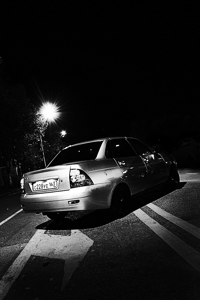 Черная Приора хэтчбек ночью